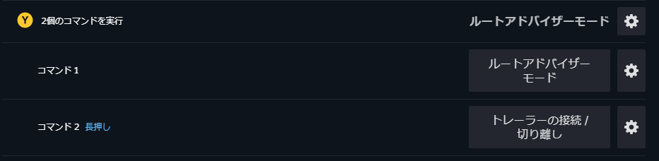 Yボタンは、デフォルトのトレーラーの接続/切り離しはあんまり使わないので長押しに変更。押したときは、ルートアドバイザーモードの表示/非表示の切り替えができるようにしている。ルートアドバイザーは、主に配送時間を確認するために使っている。